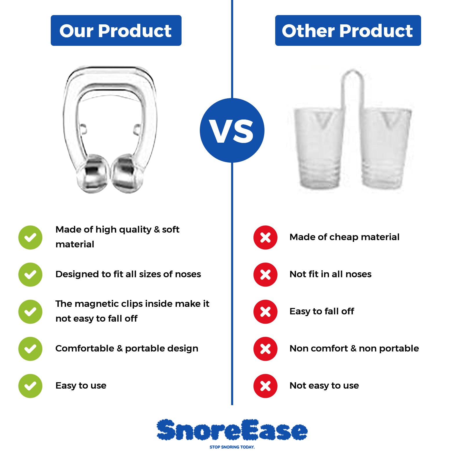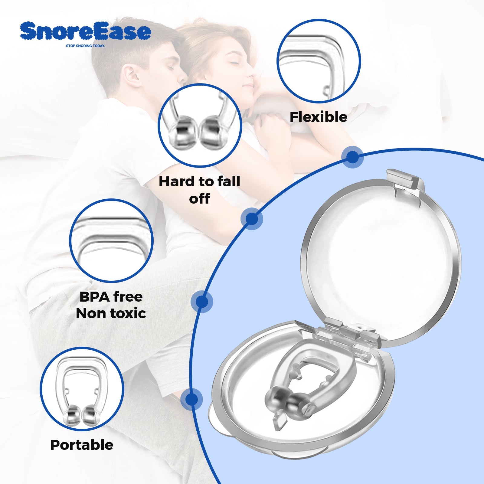 Our anti-snoring nose clips go beyond bedtime. Not only do they stop snoring, but they may also improve your breathing. Using them regularly might even change your breathing habits while you sleep, helping you inhale more oxygen and possibly strengthening your immune response to respiratory conditions